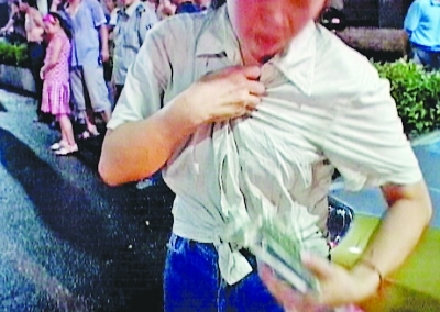 “的姐”(上图)衣裳被撕坏,男司机(下图)手臂流血。 顾婧 晓林 摄