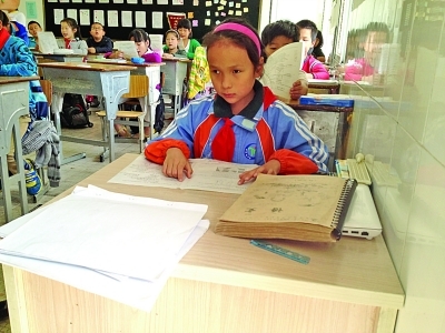 视障女孩和普通孩子一起学习
