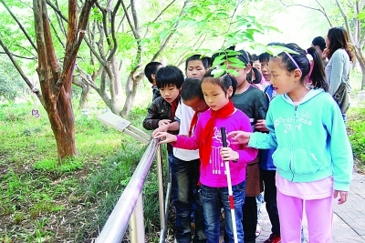 陈芊生日时,同学们和她到植物园的盲人植物馆参观。