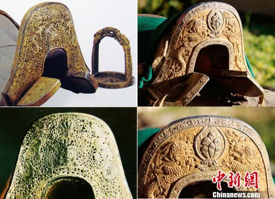 另外,内蒙古伊克昭盟伊金霍洛旗成吉思汗陵供奉的“成吉思汗狩猎马鞍”上,有二龙戏珠(“如意宝”由六颗海螺束成),其下面是大鹏金翅鸟护卫牦牛图形,是典型的川西藏区苯教和佛教图案。2012年7月8日,调查组在协德乡古寺玛尼堆中,采集到了大鹏金翅鸟护卫牦牛的石刻(宋代)。同年9月28日在协德乡雀儿村藏民拥措家发现一副马鞍,上有类似的二龙戏珠,如意宝图形等,“狩猎马鞍”也成为成吉思汗到过川西藏区的有力证据之一。