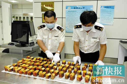 深圳湾海关昨天透露,该关近期连续查获多宗走私濒危动物制品案,查扣蟒科、鳄科等动物皮张、熊爪、珍稀鸟类头骨等物品一批。其中有159个盔犀鸟(Rhinoplax vigil)的头冠骨(也称为“头胄”)。盔犀鸟的头冠骨被雕刻成工艺品后售价昂贵。