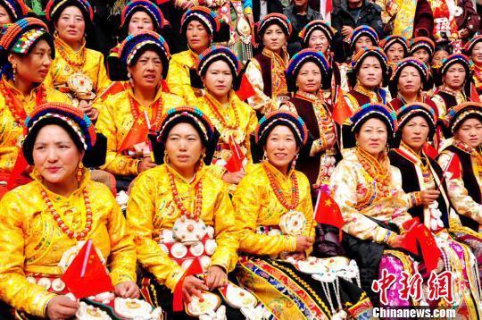 身着节日盛装的村民们欢度“若木纽”节 。 张建 摄