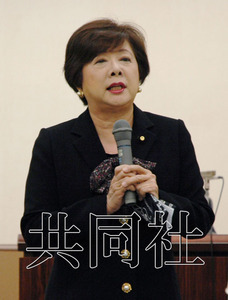 10月31日,“日本齿科医师联盟”决定推举自民党参议员石井绿参加明天夏季的参院比例代表选举。图为石井在获得推荐后致辞。