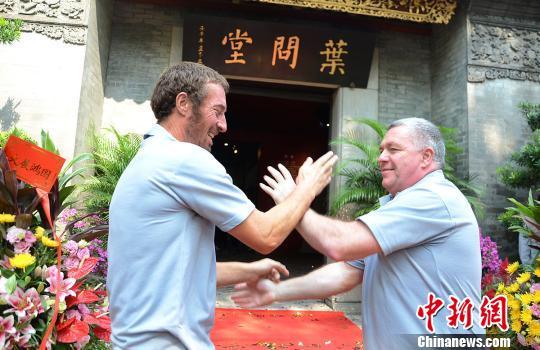 外国咏春拳手在佛山祖庙“叶问堂”前比试。 程景伟 摄