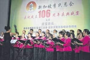 中新网11月5日电 据新加坡《联合早报》报道,新加坡李氏总会合唱团成立仅一年,在该会106周年庆典晚宴上,表演令人刮目相看。总会前总务李永清说,合唱团的前身是歌唱班,找来该会青年团新移民抒情女高音李昕当老师。