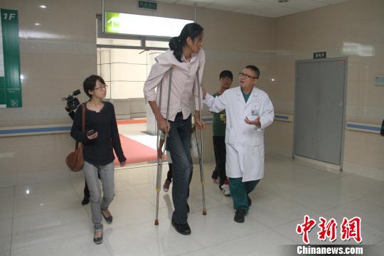中新网成都11月12日电 (吴淳友)记者在四川省八一康复中心采访时了解到,该中心将为有“小姚明”之称的安徽籍小伙子张梦永制做特殊骨头,让他站起来,走向新的人生。