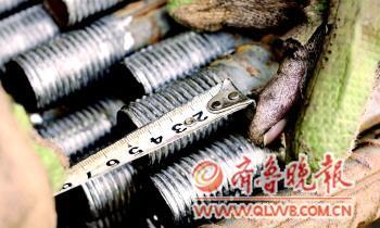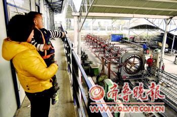在叮叮当当的钢筋碰撞声中,在轰轰隆隆的机器轰鸣声中,王小龙和工友将一根根60多斤的钢筋抬上一米多高的滚丝机工作台,逐根给钢筋两头滚丝。
