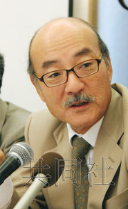 11月22日,日本驻菲律宾大使卜部敏直在马尼拉发表演讲,呼吁改善中日关系。图为回答记者提问的卜部敏直。(共同社)