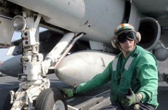 为保障飞机在甲板上顺利起降,甲板飞行保障人员需要付出相当大的努力,而且还要冒着相当大的风险。他们工作条件比较艰苦、危险,经常在喷气式发动机巨大的噪声、猛烈的海风、高温、雨雪等恶劣条件下执行战斗保障任务,而且还有被飞机起飞时的喷气式气流抛入海中或吸进入口喷管的危险。每次战斗飞行值班中,他们都要抬起总重量达1500公斤的系留缆链、刹车块和其它设备。在航母战斗部队军官和士兵中间,战机服务保障人员非常容易辨认,他们头戴棕色安全帽,身着棕色工作服,经常背负把飞机固定在飞行甲板或机库中用的系留缆链。