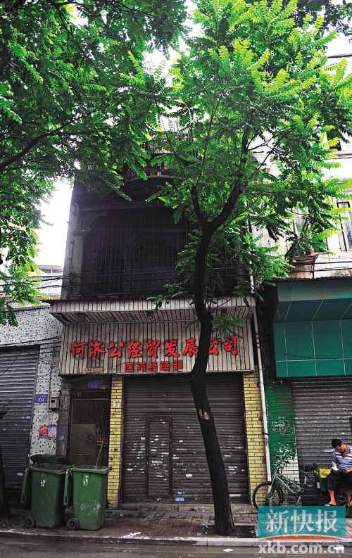 进入十八甫路不远,就可以看见在大树浓荫下的一座三层洋楼,一楼的卷闸门紧闭,大门上方写着某经贸发展公司。二楼有柱和拱券阳台,三楼的阳台中间呈外挑的弧形。