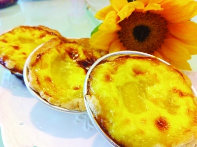 挞水原料:牛奶100克、淡奶油100克、蛋黄3个、玉米淀粉10g、炼乳少许