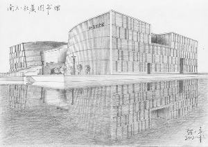 毕业后,工作之余闲来无事时,何小平也会画上几笔。“画杜厦图书馆的时候,我先拍了正面的照片,又从网上找了一些图片做参考,画了五六个小时,水里的倒影都是一笔笔画出来的。”