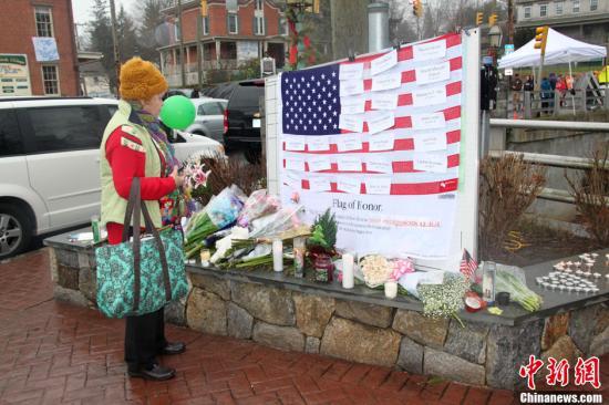 12月16日,美国康涅狄格为纽敦桑迪胡克小学枪击案遇害者展开大规模的悼念活动,桑迪胡克小学校门口堆满了各种纪念品和蜡烛,寄托人们的沉痛哀思。枪击案导致27人被杀,其中包括20名儿童,枪手自杀身亡。中新社发 李洋 摄