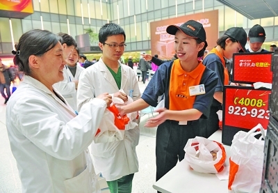 东方既白的工作人员为鼓楼医院的义诊医生免费送上热腾腾的午餐。薛玲摄