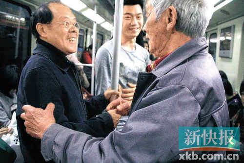 ■地铁二号线上,老伯带着不少东西上车,坐在靠门位置的年轻小伙子随即起身示意老伯坐下,引来一片赞许目光。评选理由年轻人有爱心,不仅让座,还细心地扶老人入座,十分有心!(摄影:车文丽)