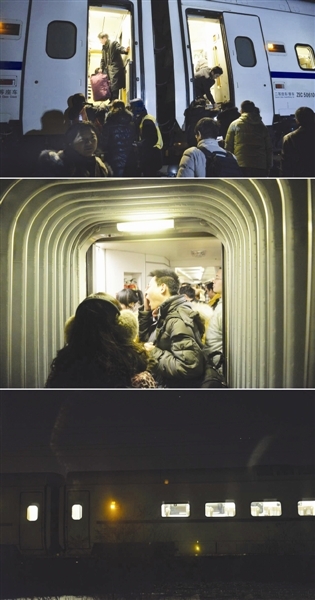 经过20多分钟,全车两百多人全部转移到接应的列车上,但从通州到北京站这段距离开了一个多小时,其间不断有工作人员就晚点一事向乘客道歉,但并没有解释出了什么事。