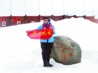 最让记者感到亲切的,是长城站的汪站长带着他的3位同事,已站在登陆点迎接我们一行。他们刚刚越过了漫长昼夜冬季,见到我们的兴奋和热情程度似乎不亚于我们见到他们。记者从背包里抽出一条早已准备好的红色条幅,站长看到,颇为警觉,忙问上面写的是什么。他说:“我们有规定的,不能随便做广告。”可他一看到是“扬子晚报”四个字时,立即乐了:“拿扬子晚报合影可以。”一边的几位长城站队员都主动上来合影,他们自我介绍说,虽然都不是江苏人,但全都知道“扬子晚报”。