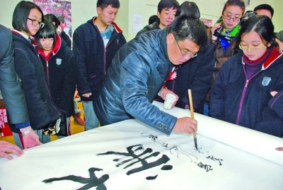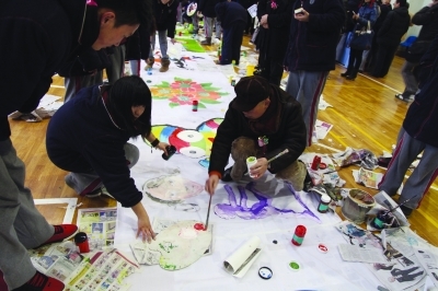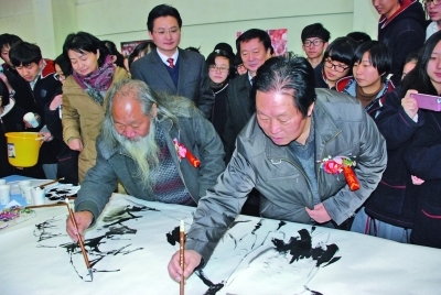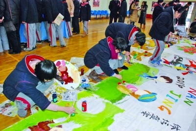 艺术大家喻继高、徐培晨、左庄伟、邢健健、李啸和百名学子共绘百米长卷迎接2014青奥会
