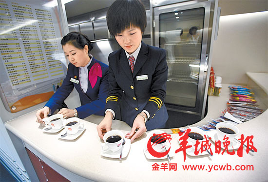 列车服务员在提供咖啡服务 新华社发