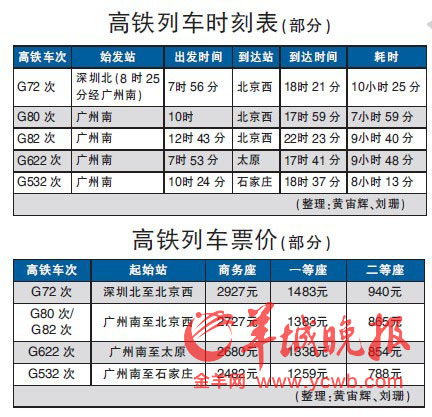 羊城晚报讯 记者 宋王群、通讯员 黎文苟报道:26日,深圳特区至首都北京高铁列车正式开行,每天开一趟,开车时间为早上7时56分,全程2400公里,历时10小时25分,到达终点站北京西为当日18时21分。