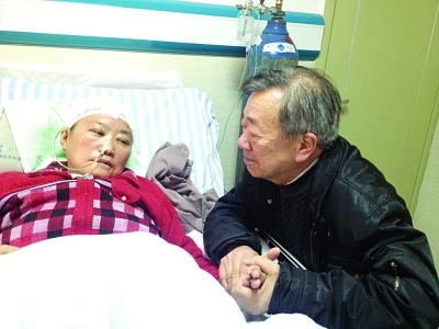 王师傅在医院陪护重伤老伴。任国勇 摄