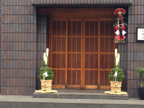 正规的门松,是用三根柱子和松枝构成,并绑以特制的稻草绳。但是,许多居住在公寓楼里的人没有这么大的地方可以放门松,因此,超市里专门有卖小松枝,可以挂在门上,以表心意。