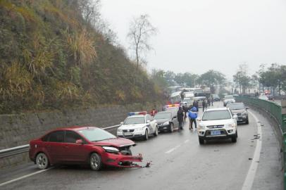 昨日下午3点过,小雨,成渝高速公路内江段一弯道处,16辆车连环相撞,造成10余人不同程度受伤,此外,事故还造成成渝高速内江段堵车长达近6公里。截至昨晚7点半,该路段恢复通车,车辆缓行通过。