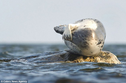 (原标题:海狮栖息岩石上晒太阳 平衡力超强似练瑜伽(图))