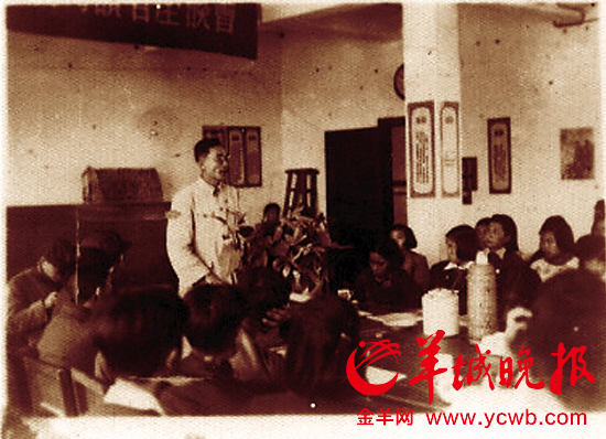 1950年,李易安(站立者)在广州三联书店读者座谈会上讲话