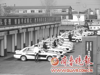 5日中午,在经十东路一家驾校的训练场内,一名教练与学员拿着米尺在地面进行测量。之后,这名教练先上车实验一番,入库、出库,如此反复了十多次之后,他才下车给学员讲解。
