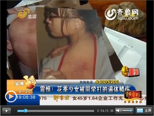 花季少女被围殴遍体鳞伤 皮鞭抽打衣服脱光拍裸照(图)