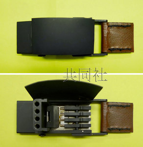 图为皮带扣打开的状态,右侧棒状物插入后,子弹就可从左侧的圆孔中发射出去。