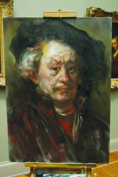 纽约时间1月8日上午,邢健健教授来到美国大都会艺术博物馆进行艺术交流。大都会博物馆临摹部主任墨泽尔女士会见邢教授一行并亲切交谈,随后在她的安排下,邢健健临摹了世界级油画大师伦勃朗的原作《自画像》。