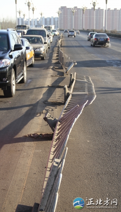 桥上护栏被撞倒