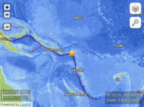 中新网2月6日电 据美国地质勘探局网站消息,北京时间2月6日9时12分,太平洋所罗门群岛东南部的圣克鲁斯群岛发生里氏8.0级地震,震源深度5.8公里。