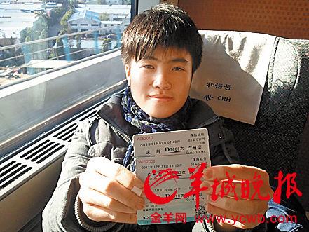 1月2日,邓子峰按照铁路游计划,从珠海乘坐广珠城轨来到广州,半小时后顺利登上武广高铁的G552列车。“这4个多小时的高铁旅程,从广东到湖北,不仅让我看到景色的变化,也看到了气候的变化,这和我一直梦想中的快速通道是一样的。”
