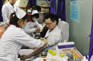 →春节刚过,南京医院A型血紧缺。昨天,南京胸科医院组织100多名医护人员义务献血,南京市血液中心献血车开进医院。经过筛选,当天共计60余人参加体检,主动献血,缓解临床用血困难。倪静戚在兵