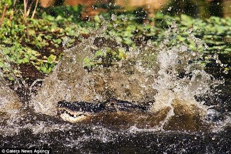 鳄鱼冲出水面