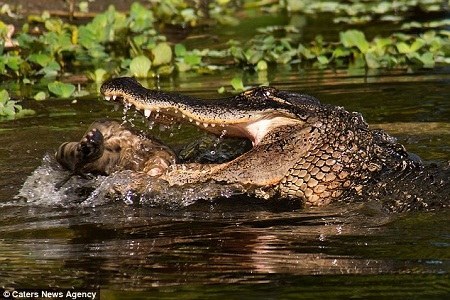 山猫成了鳄鱼的盘中餐