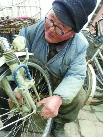 下关一9旬翁天天摆摊修车 他把修车当成了锻炼(图)