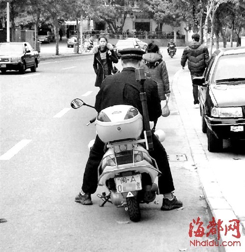 这辆警用摩托牌照不全?