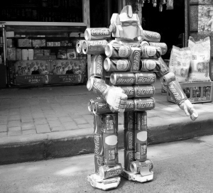 南京:易拉罐搭起“变形金刚” 招揽生意(图)