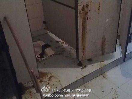 @海璇璇: 据说是楼上的男生抽烟以后扔便池里面,楼下就爆了