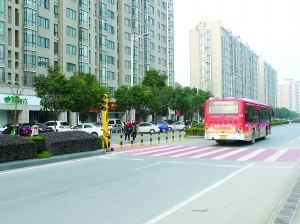 现在,北京东路等小学门口,已经画上了彩色斑马线,不但醒目而且还防滑,下一步在各学校门口继续推广这种彩色斑马线。