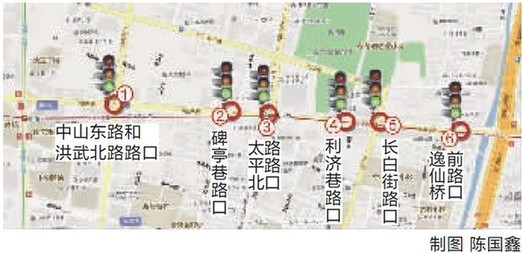 南京“红绿灯一条街”?部分路口拐弯还得多留神(图)