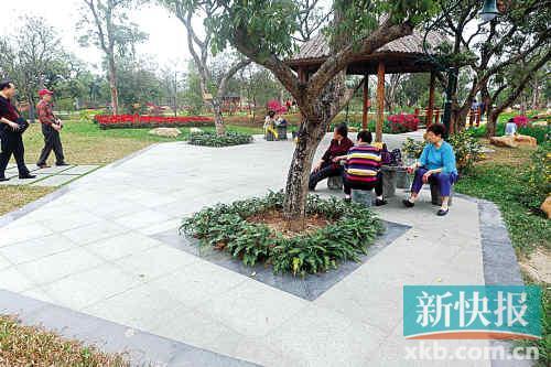 在海珠湿地公园,果农杜老伯的感受是,道路比以前更宽了。沿着一条涌边的园道往前走,一个亭子旁边的四棵龙眼树被水泥地面包围,还有一棵高大的果树则被包围在道路里。“果树是要透气的,你把果树四周用水泥、石板封住,不利于它的生长。”果树专家说,景观树也许可以这样,但果树不行,它不是景观树,看样子,这棵树确实长得不好,不及时处理,估计也活不长。