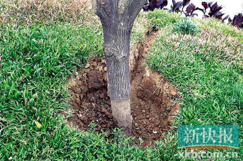 ■凡是树根周围挖了一个坑的,就是发现有树要死了,把捂住的泥又挖开了。