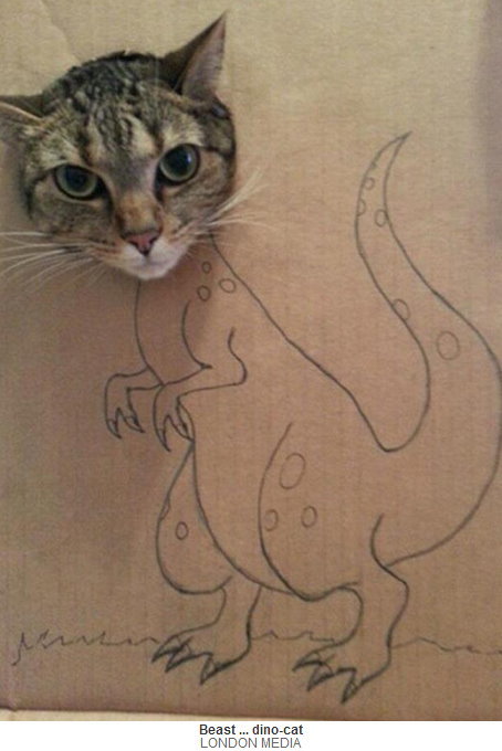 只要有一支彩色笔,就能替心爱的宠物猫变身为另一种角色不要误会,色笔可不是直接在猫脸上做文章,而是有饲主在废弃纸箱上发挥创意,以卡通主题为作画方向,当构图完成后,脸部区块留白挖空,最后将自家猫咪的头放进该圆框中,就完成了猫咪大变身的任务。