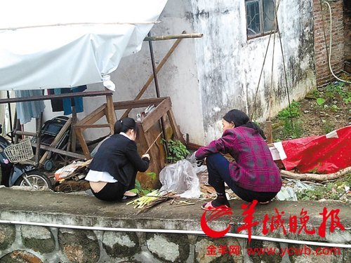 近日,在珠海凤凰山神前村出口处,羊城晚报记者看到,两位附近居住的市民手里各拿着一捆已经整理好的竹笋下山,保安见状后上前阻拦,但市民迅速离开。而在山脚下的一间民宅外面,羊城晚报记者也发现,两名女市民正在有说有笑地清洗盗挖来的竹笋。