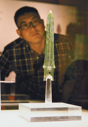 昨日,在“楚文物珍品展”上展出的“吴王夫差矛”记者 侯智 摄